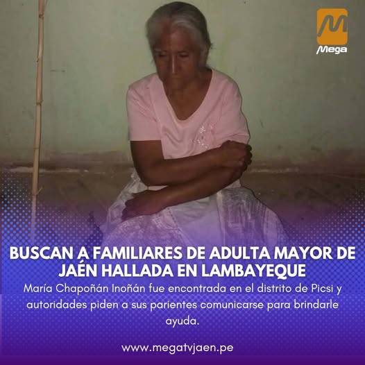 Las autoridades vienen buscando a los familiares de María Chapoñán Inoñán, una adulta mayor que fue encontrada en estado deplorable en el centro poblado Capote,