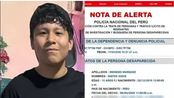 Una madre de familia, identificada como Yesenia Marquez, reportó a través del Rotafono de RPP la desaparición de su hijo Mateo Josue Meneses Marquez (15).